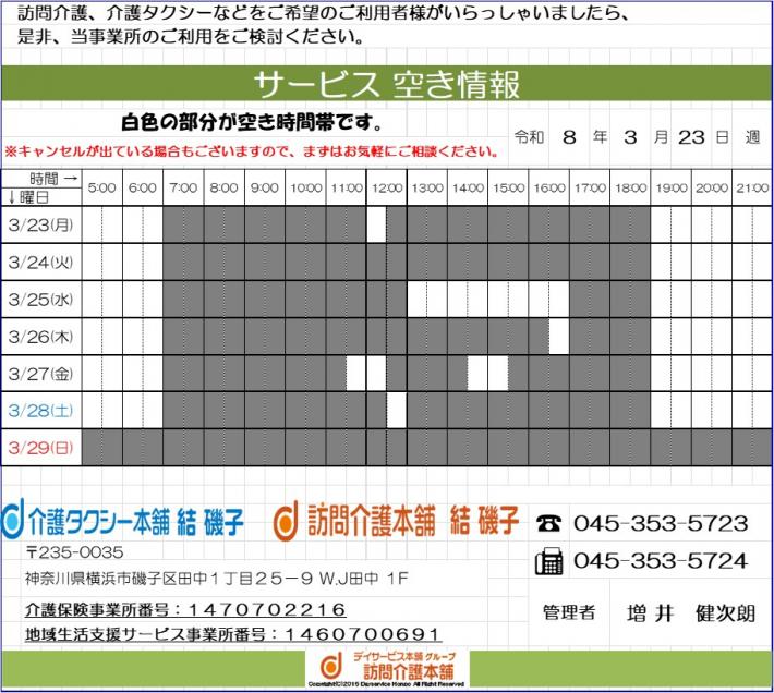2026-03-16(月) 訪問介護本舗 結 磯子 |