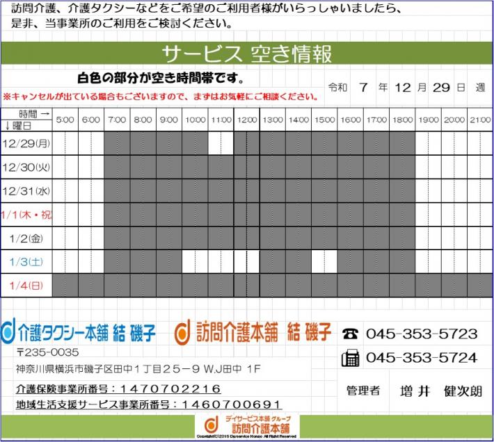 【サービス空き状況】12/29週