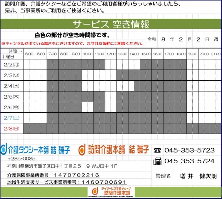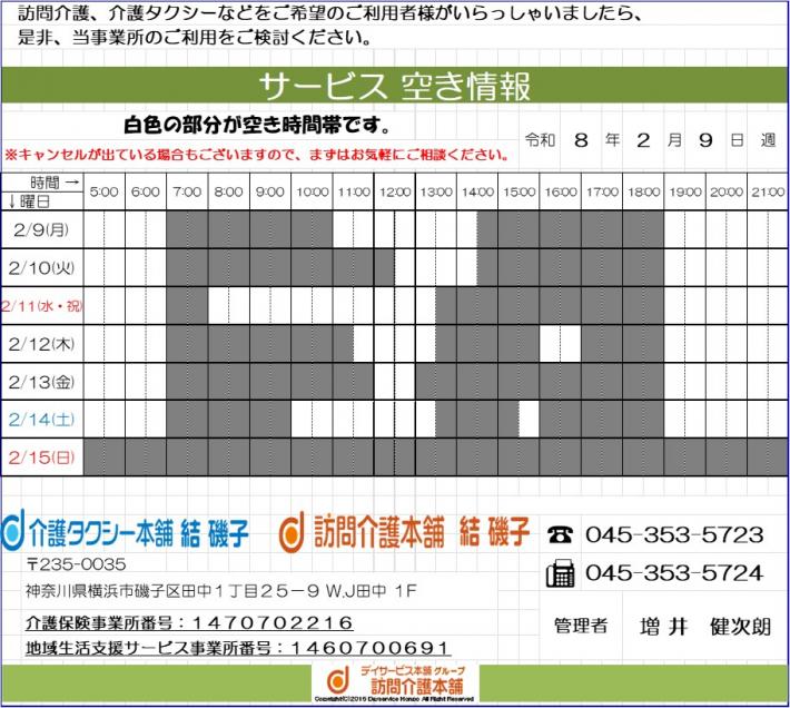 【サービス空き状況】2/2週